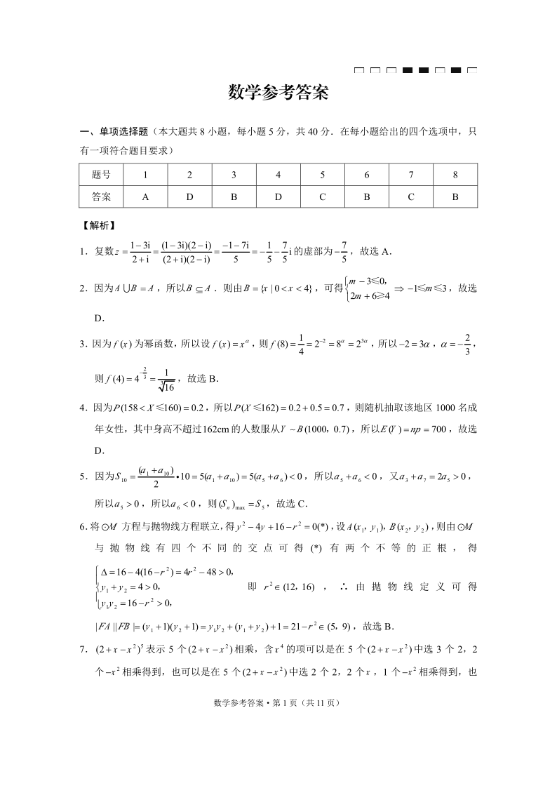 高三数学答案--云南师范大学附属中学2023届高考适应性月考(三)