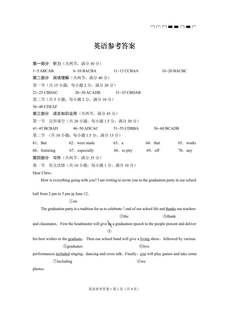 高三英语答案--云南师范大学附属中学2023届高考适应性月考(三)