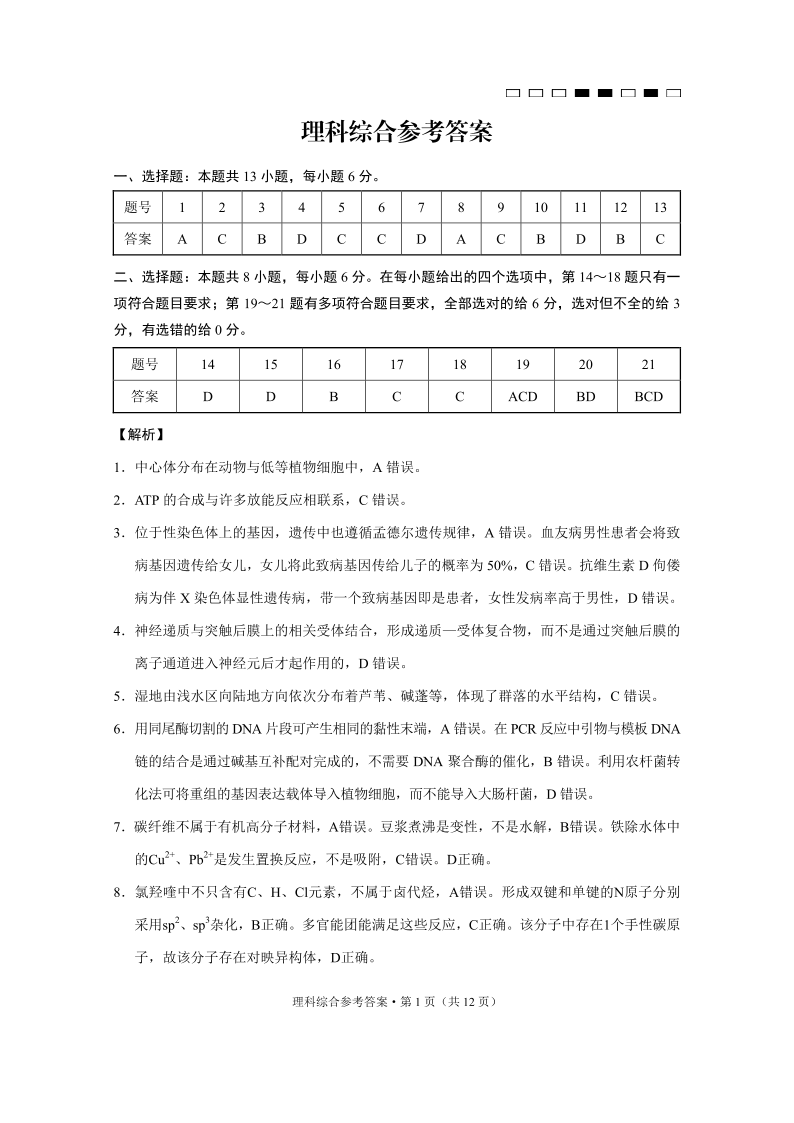 高三理综答案--云南师范大学附属中学2023届高考适应性月考(三)