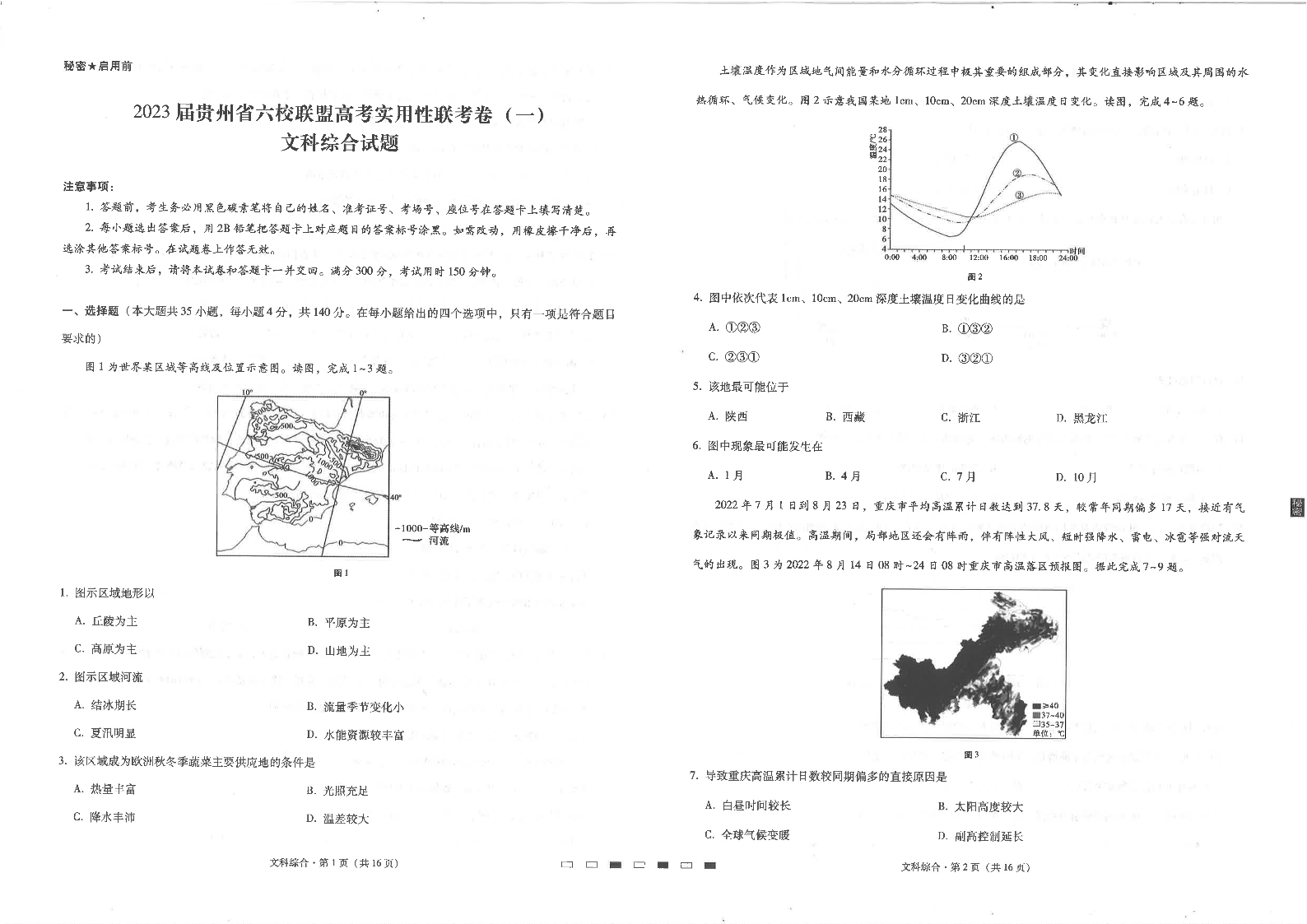 高三文综--贵州省六校联盟2023届高三上学期高考实用性联考(一)