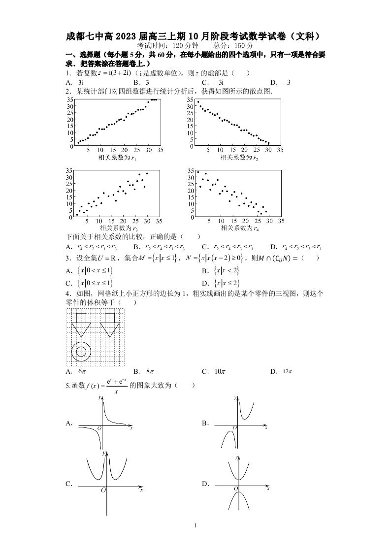 高三文数--四川省成都市第七中学2023届高三上学期10月阶段考试