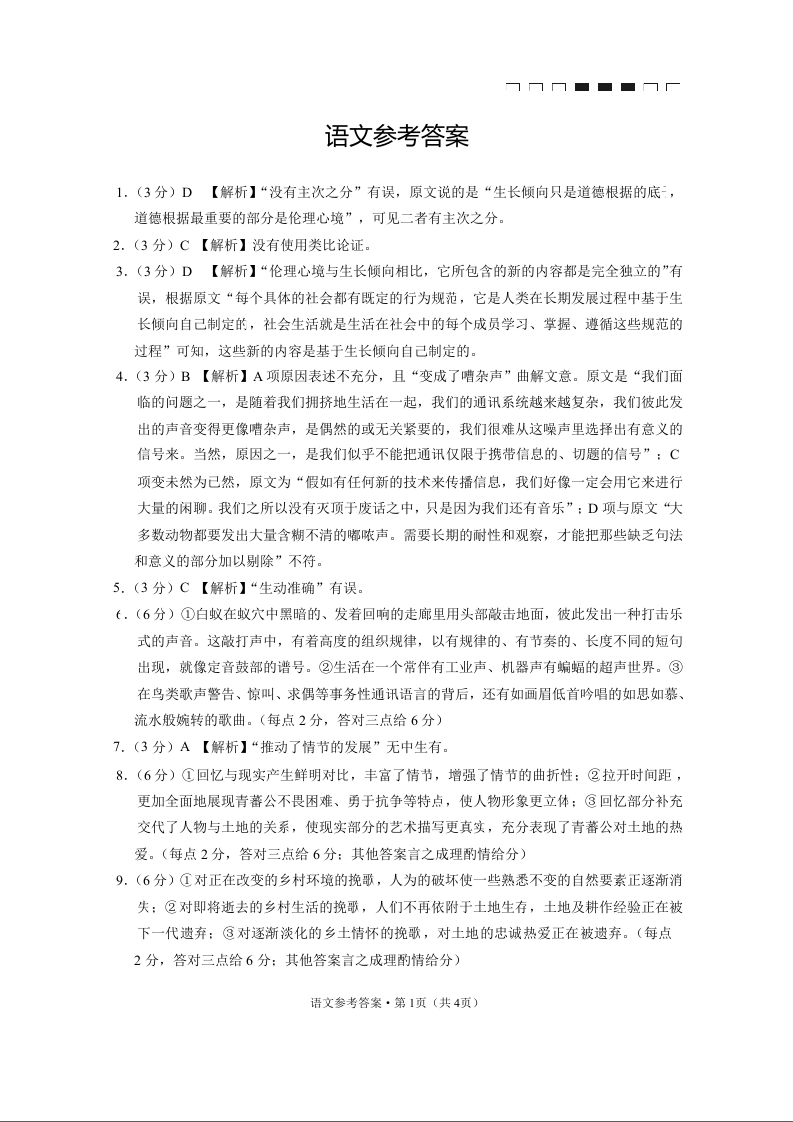 高三语文答案-云南师范大学附属中学2023届高考适应性月考(四)