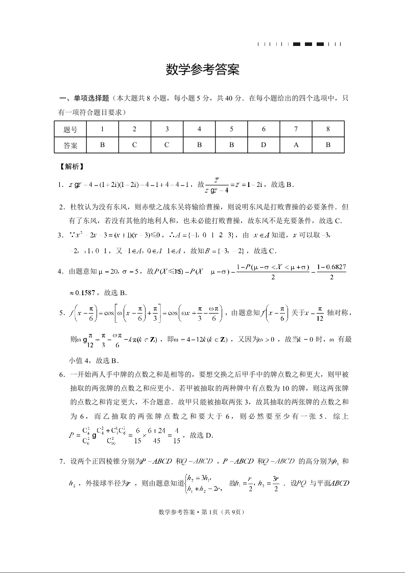 高三数学答案-云南师范大学附属中学2023届高考适应性月考(四)