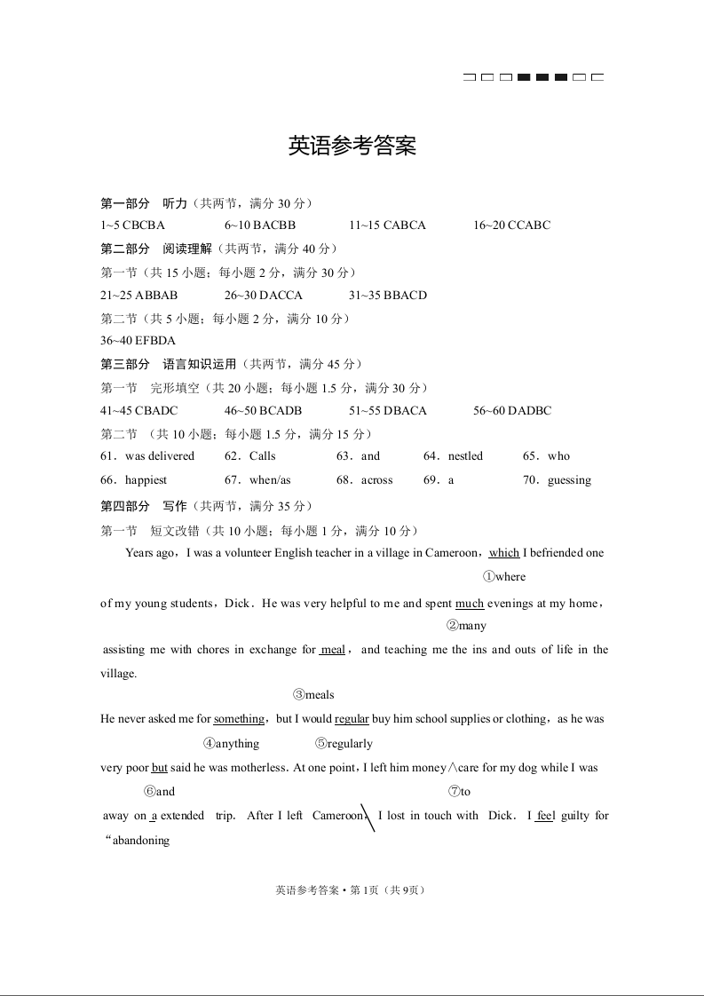 高三英语答案-云南师范大学附属中学2023届高考适应性月考(四)
