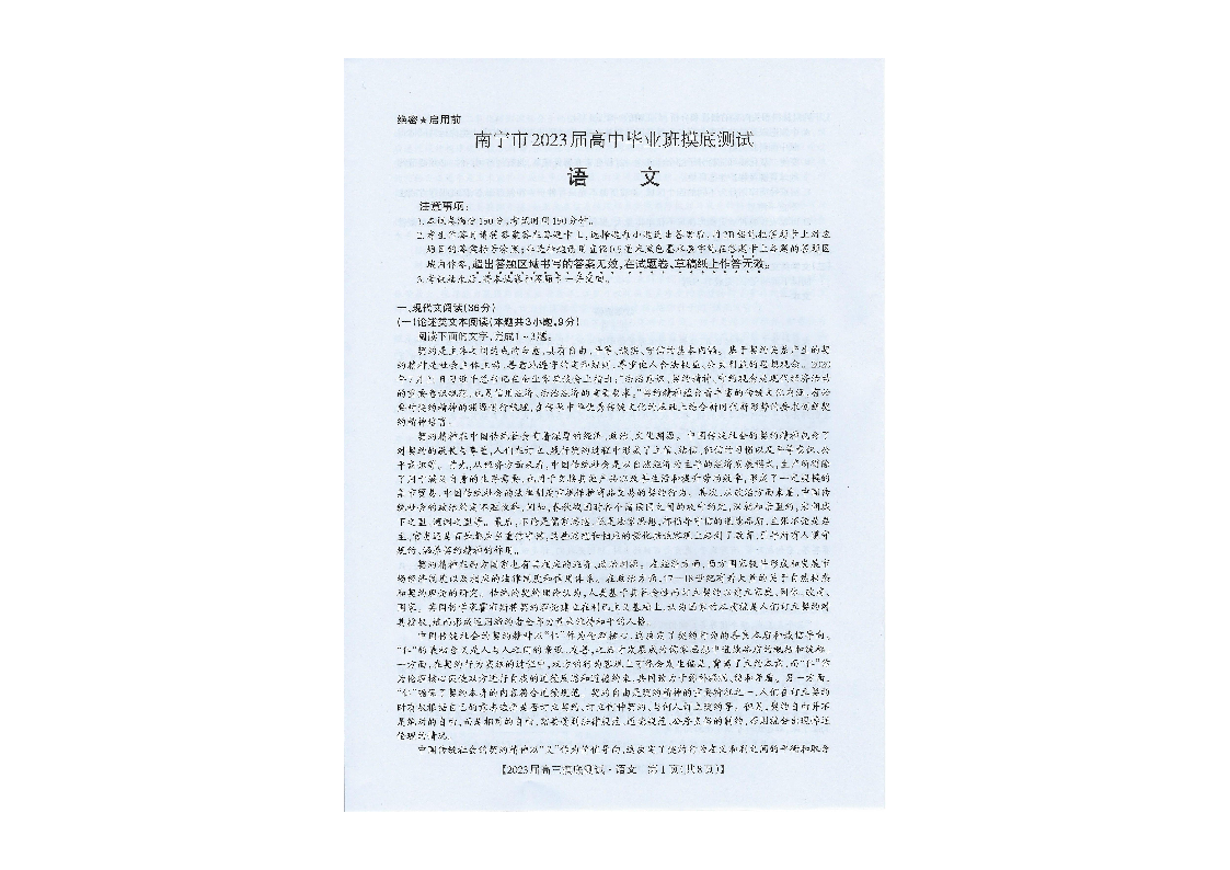 高三语文--广西南宁市2023届高三上学期毕业班摸底测试