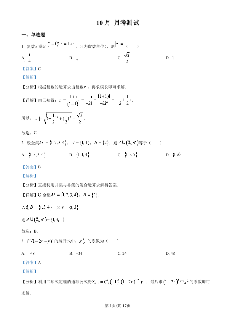 高三数学(精品解析版)--江苏省南京市第一中学2026届高三上学期10月月考
