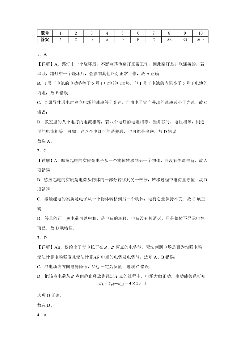 高二物理答案--宁夏回族自治区石嘴山市第一中学2025-2026学年高二上学期10月月考
