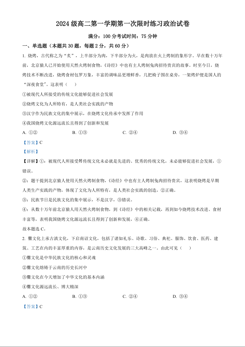 高二政治(解析版)--安徽省合肥市第七中学2025-2026学年高二上学期第一次月考