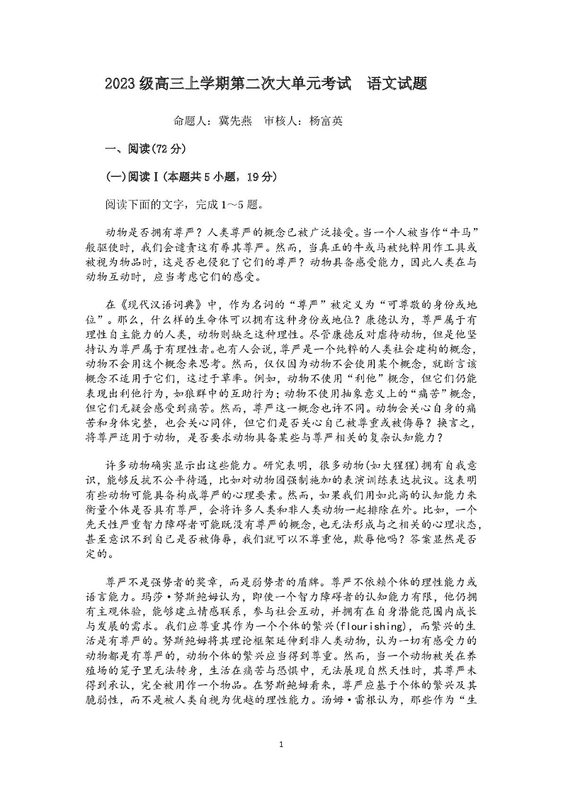 高三语文--山东省新泰市第一中学北校2026届高三上学期10月月考