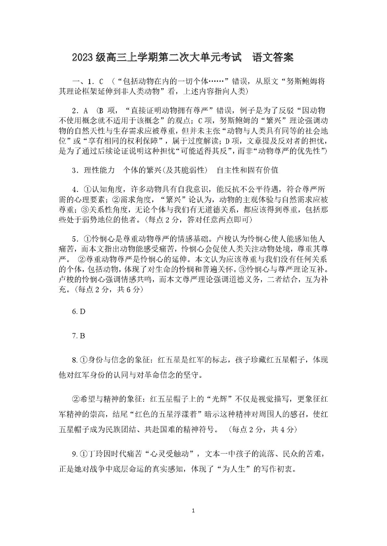 高三语文答案--山东省新泰市第一中学北校2026届高三上学期10月月考