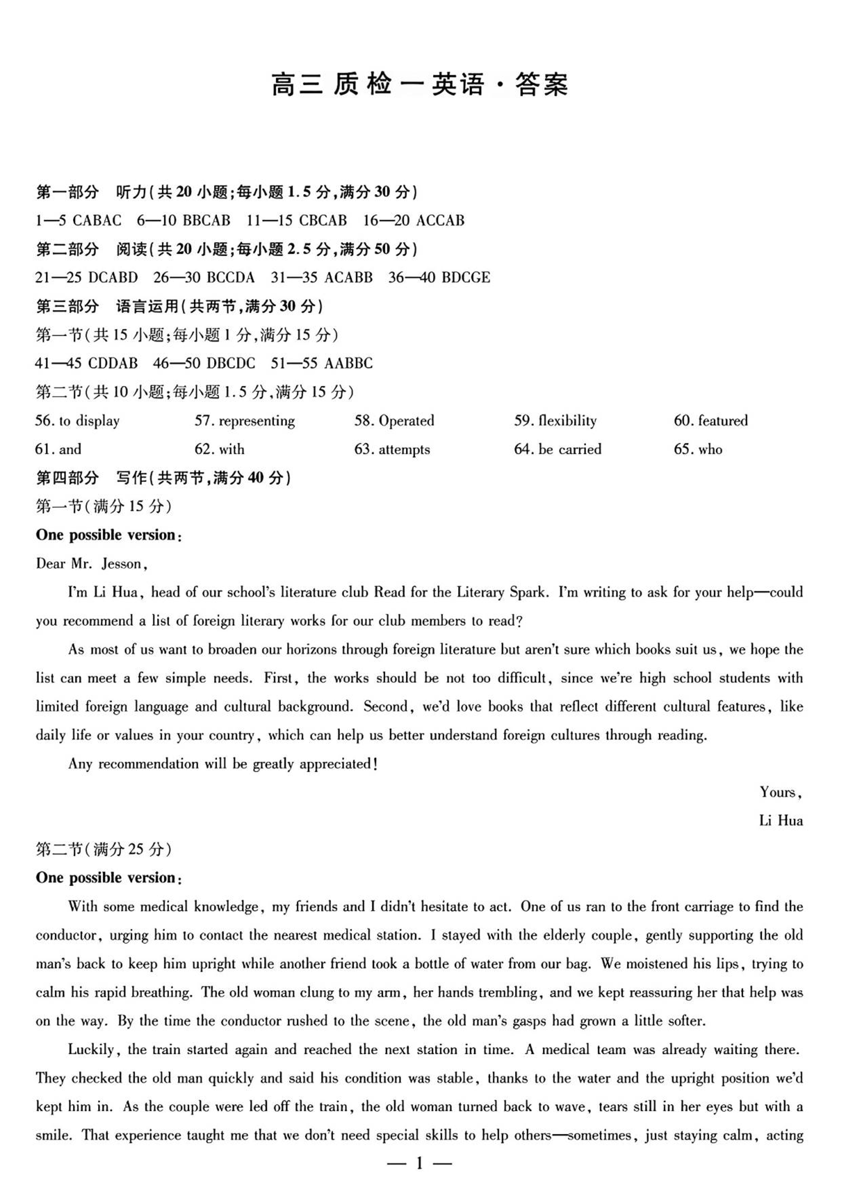高三英语答案--湖南省湘一名校联盟&天一大联考2026届高三10月联考