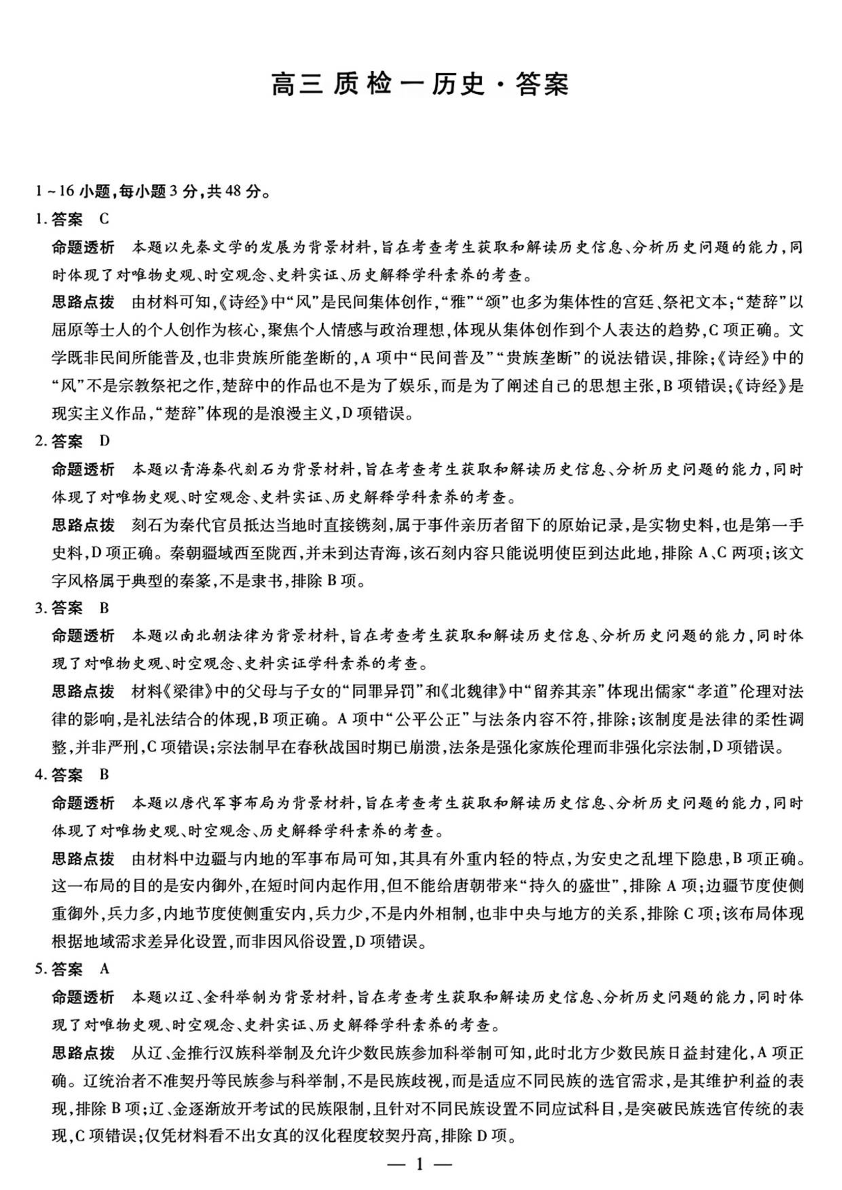 高三历史答案--湖南省湘一名校联盟&天一大联考2026届高三10月联考