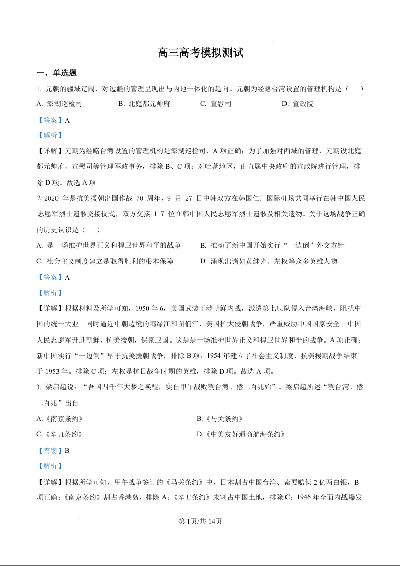 高三历史(精品解析版)--江苏省南京市第二十九中学2026届高三上学期10月月考