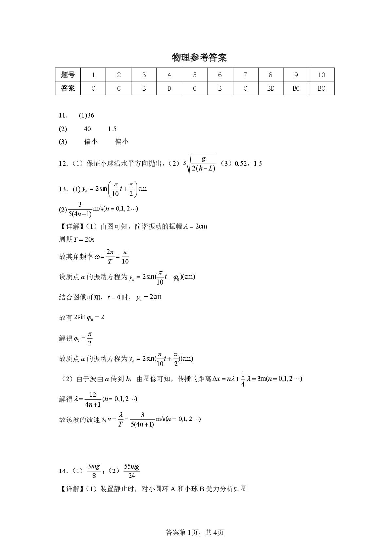 高三物理答案--山西大学附属中学校2026届高三上学期10月模块诊断