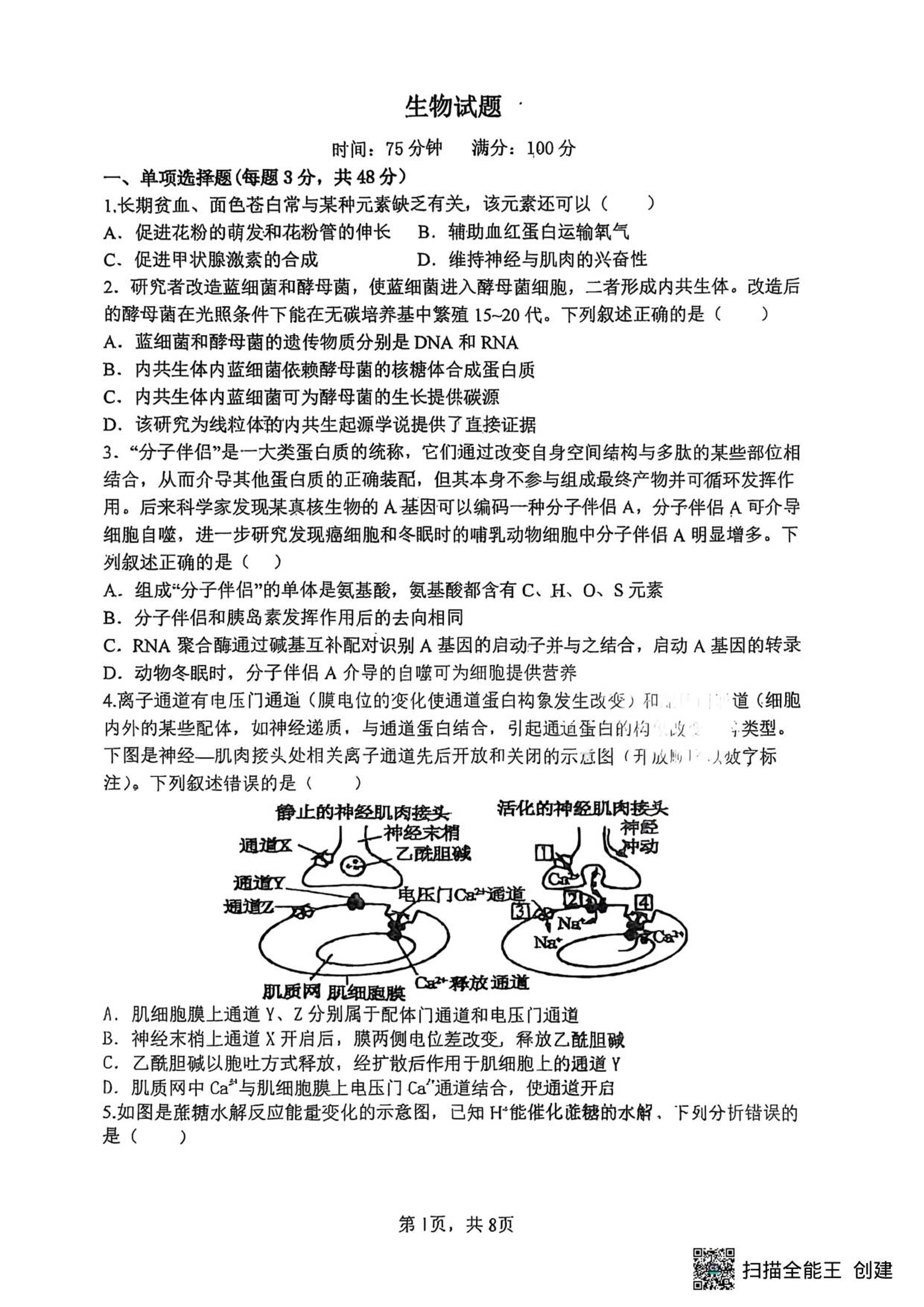 高三生物--山西大学附属中学校2026届高三上学期10月模块诊断