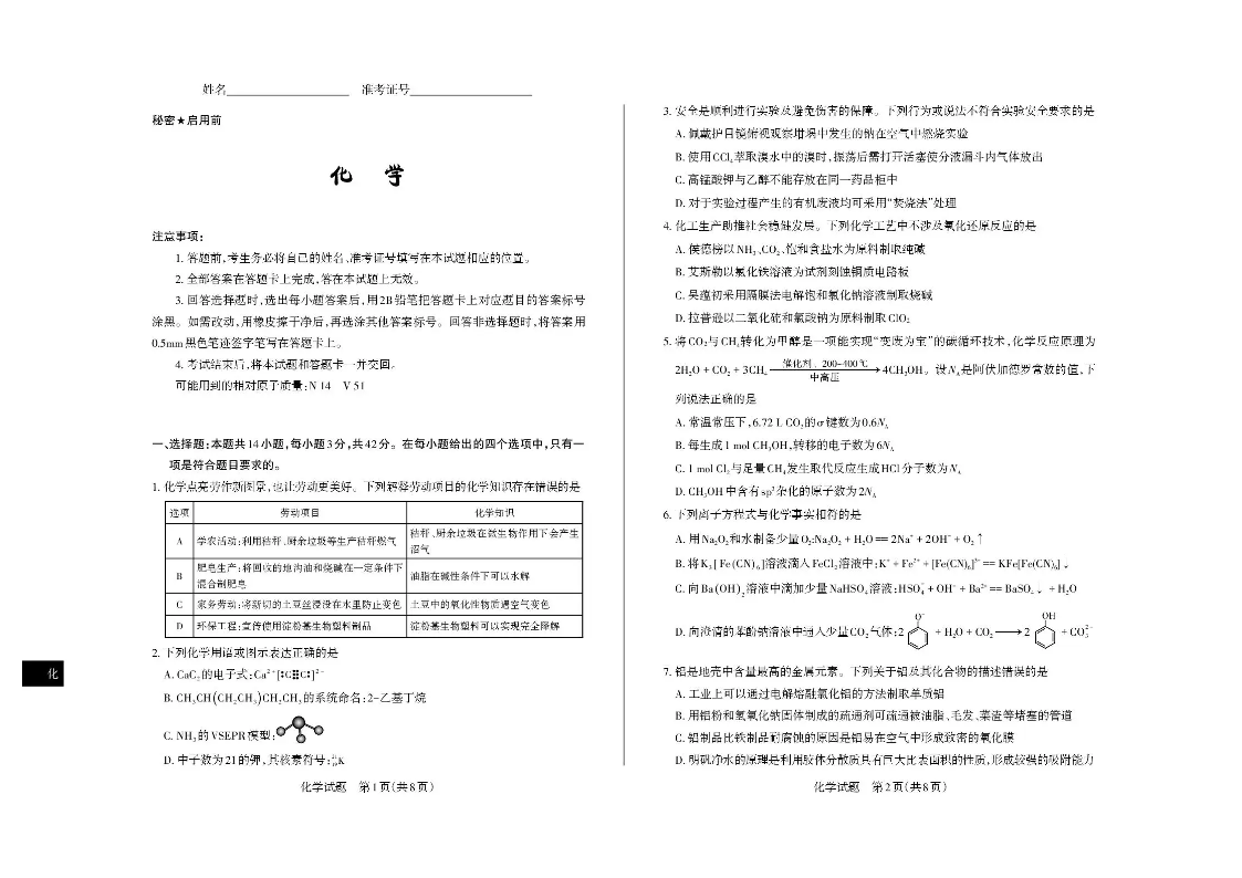 高三化学+答案--山西省思而行2026届高三上学期备考核心模拟中期考试