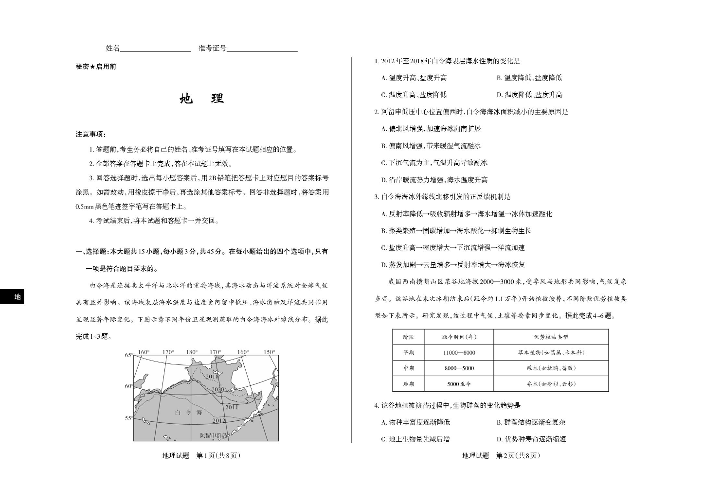 高三地理--山西省思而行2026届高三上学期备考核心模拟中期考试