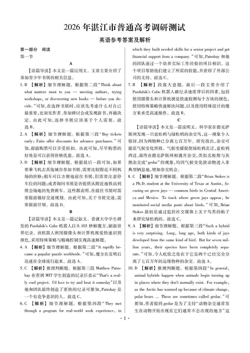 高三英语答案--广东省湛江市2026届高三普通高考10月调研测试