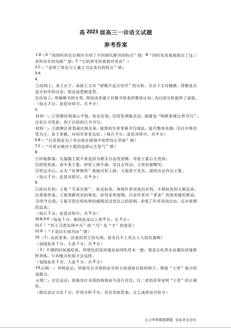 高三语文答案--四川省元三维大联考2023级高三第一次诊断考试