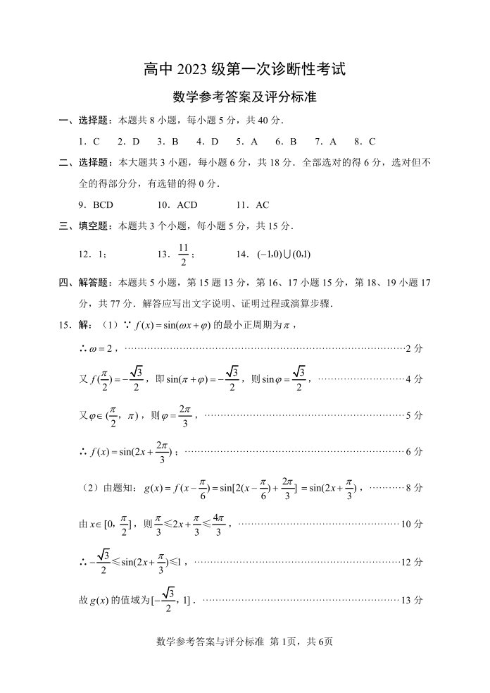 高三数学答案--四川省元三维大联考2023级高三第一次诊断考试