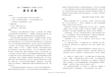 高三语文+答案--宁夏回族自治区银川一中2026届高三年级第三次月考