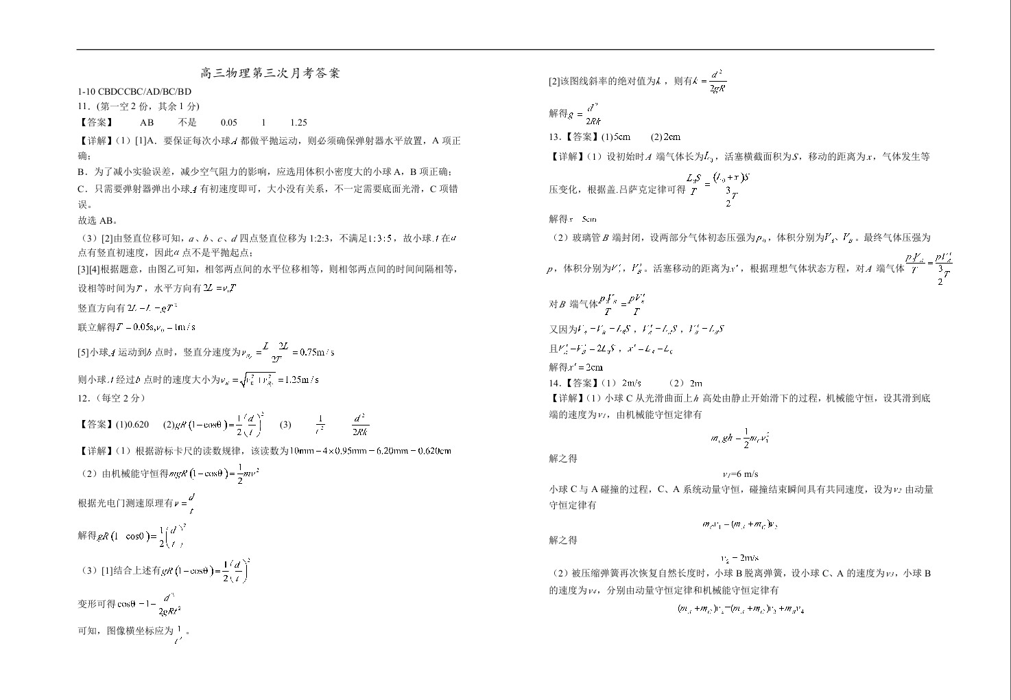 高三物理答案--宁夏回族自治区银川一中2026届高三年级第三次月考