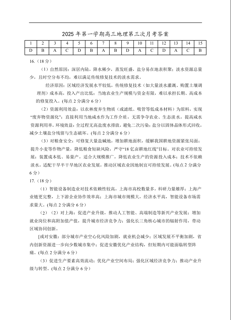 高三地理答案--宁夏回族自治区银川一中2026届高三年级第三次月考