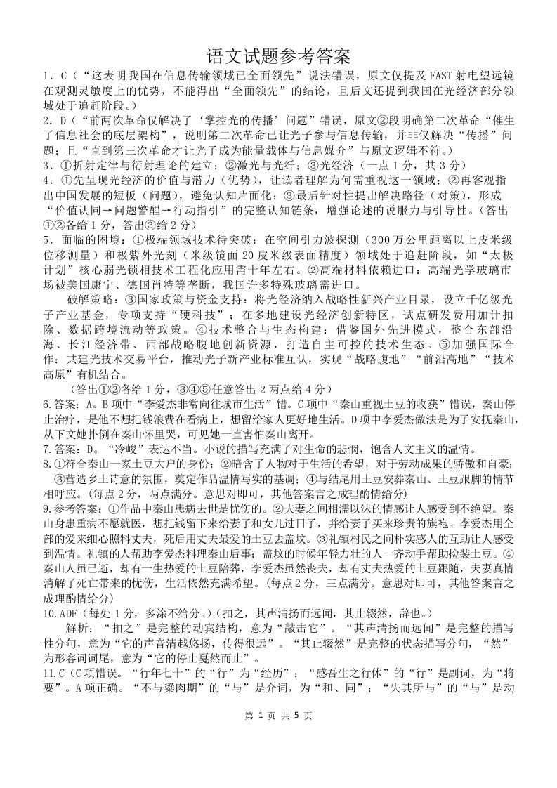 高三语文答案--四川省射洪中学校2026届高三上学期10月期中考试