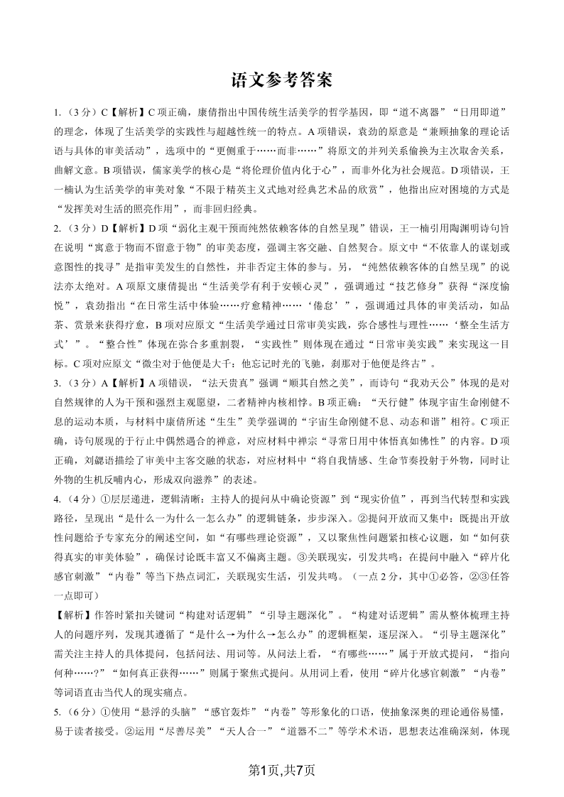 高三语文答案--重庆市巴蜀中学2026届高考适应性月考卷(三)