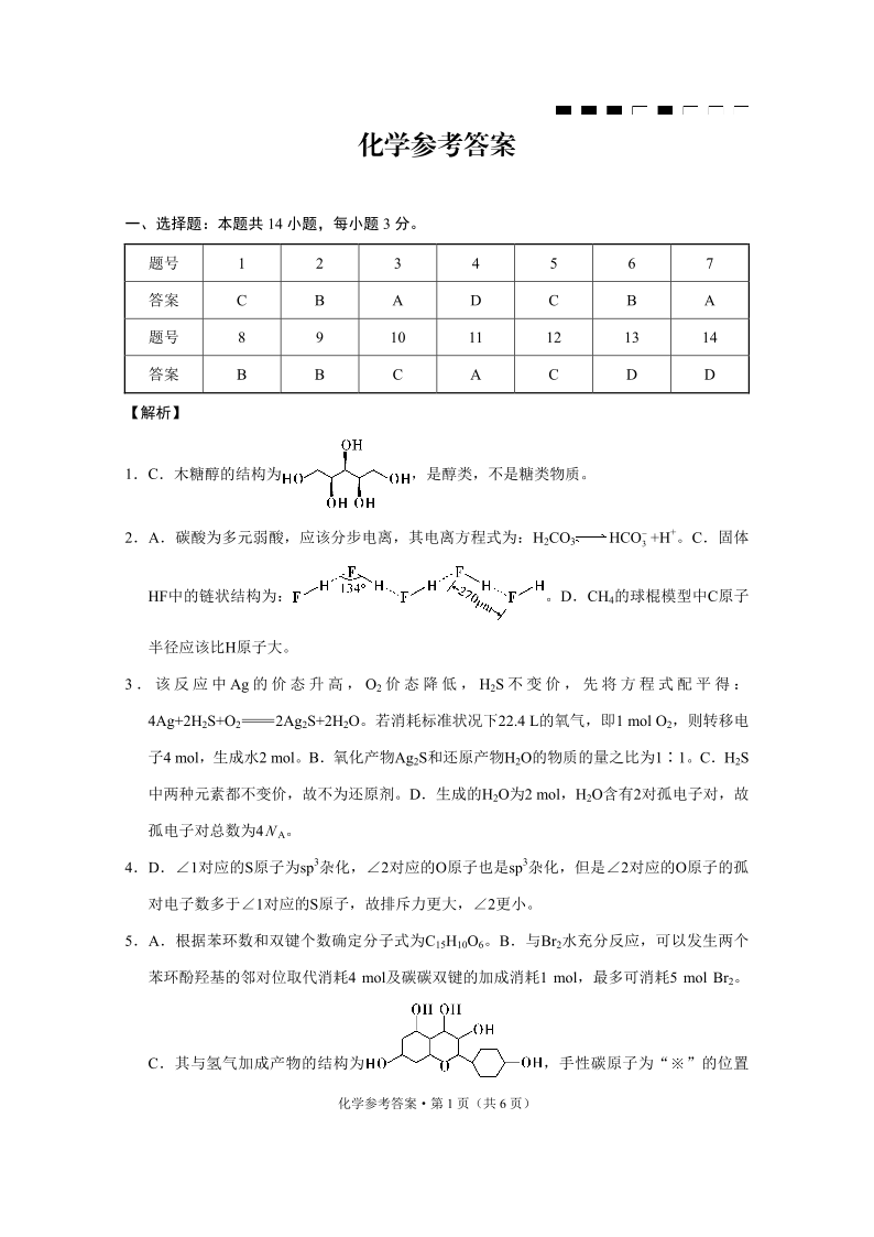 高三化学答案--重庆市巴蜀中学2026届高考适应性月考卷(三)