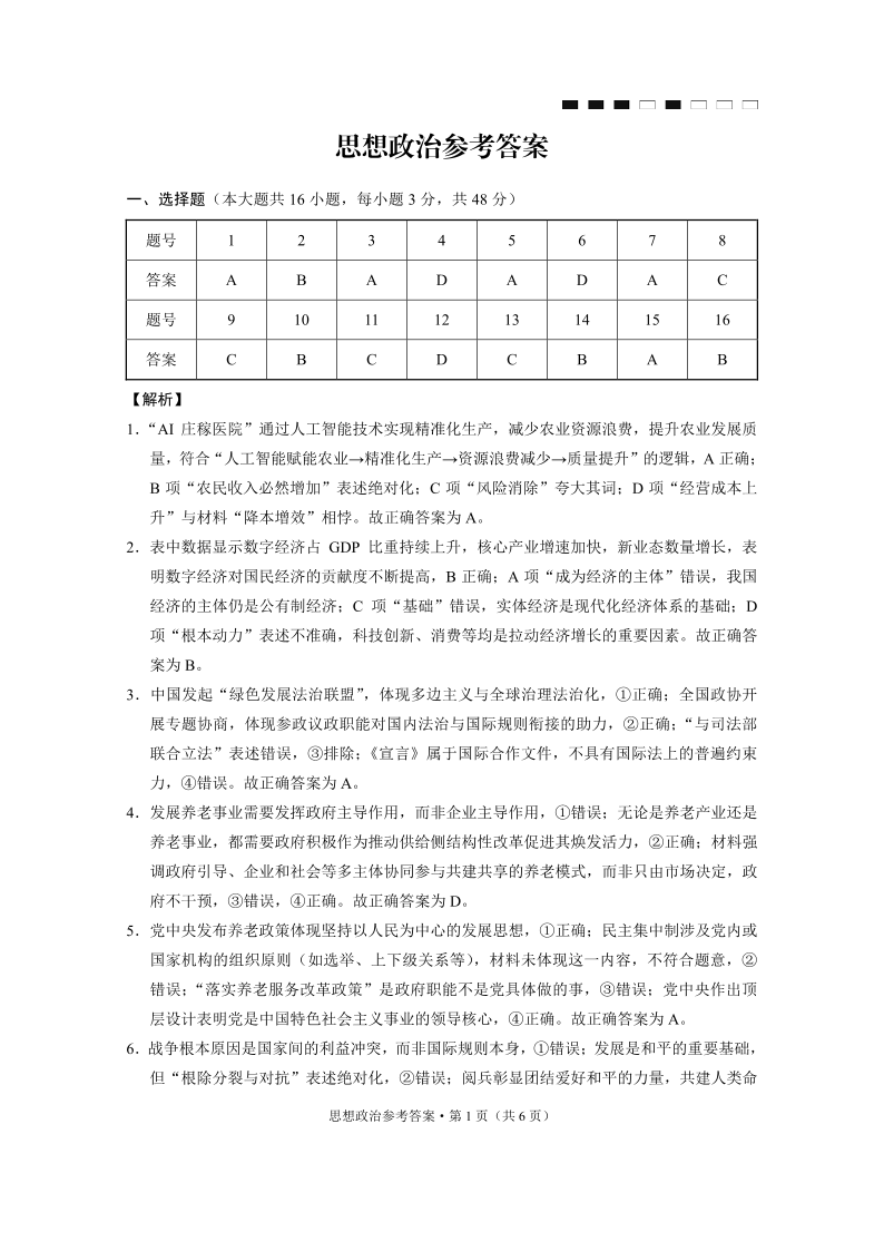 高三政治答案--重庆市巴蜀中学2026届高考适应性月考卷(三)