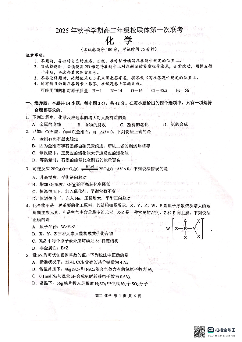 高二化学--广西壮族自治区河池市十校联考2025-2026学年高二上学期10月月考