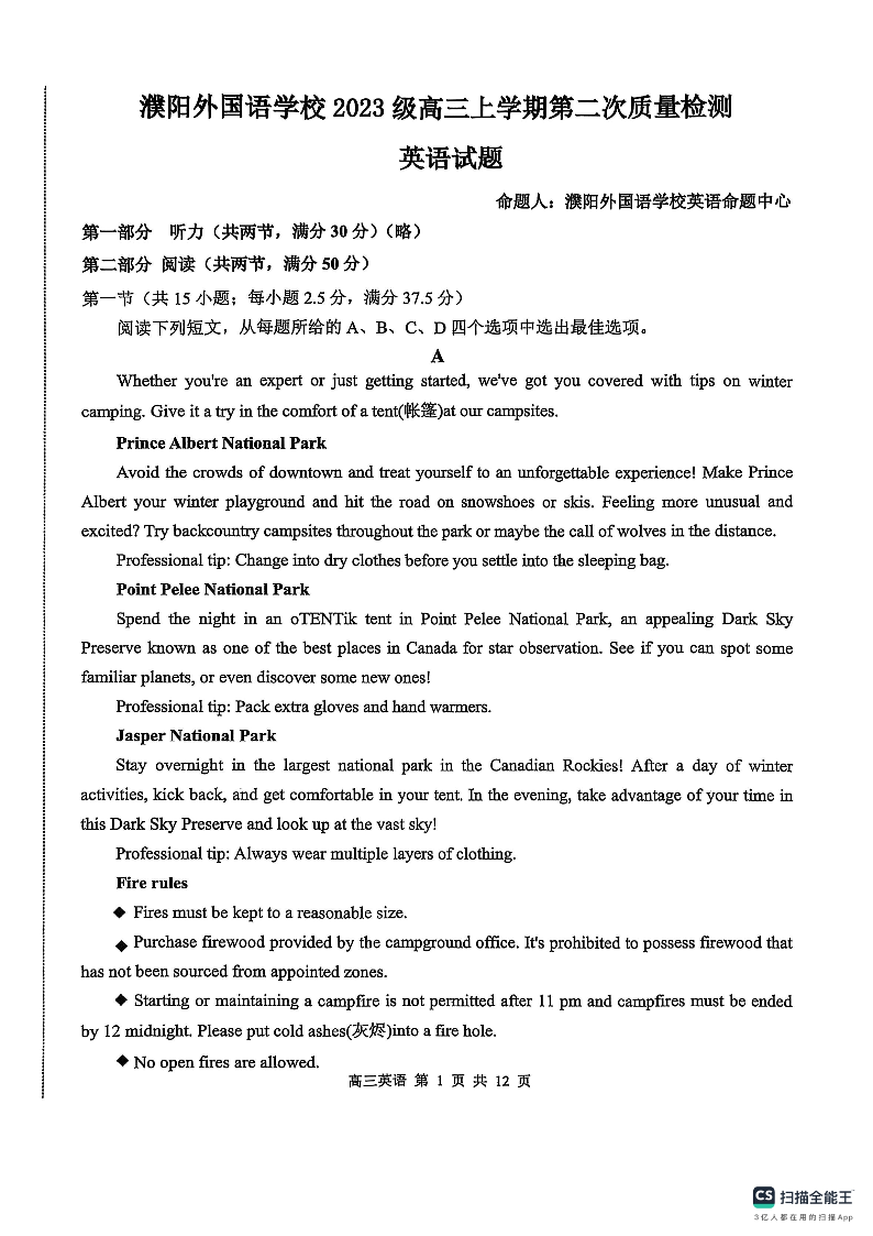 高三英语+答案--河南省濮阳市外国语学校2026届高三上学期10月月考