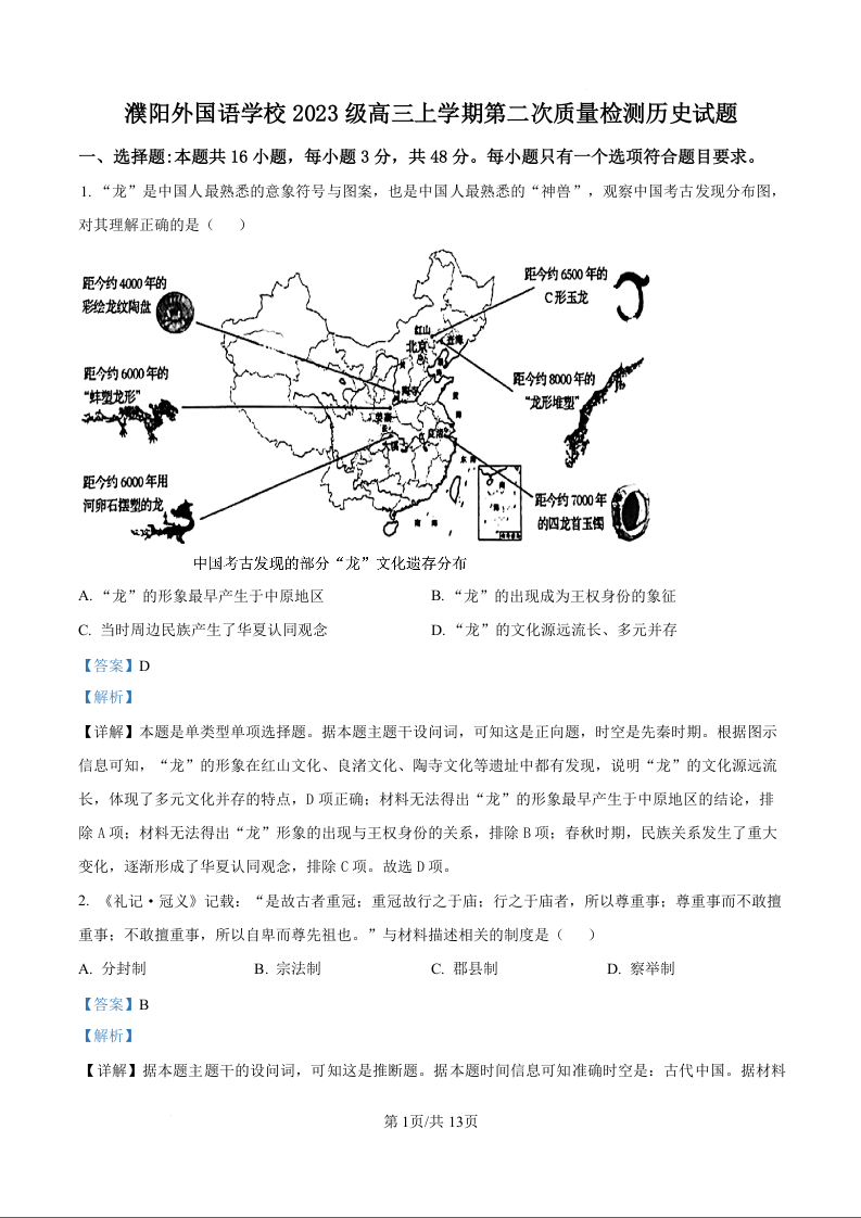 高三历史(精品解析版)--河南省濮阳市外国语学校2026届高三上学期10月月考