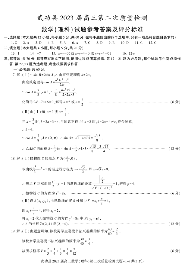 高三理数答案--陕西省咸阳市武功县2022-2023学年高三上学期第二次质量检测