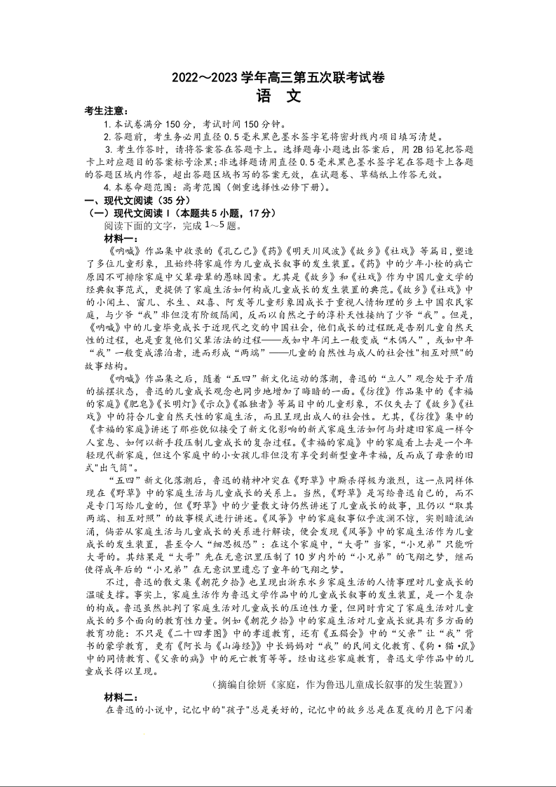 高三语文+答案--山西省部分学校2022-2023学年高三上学期第五次联考