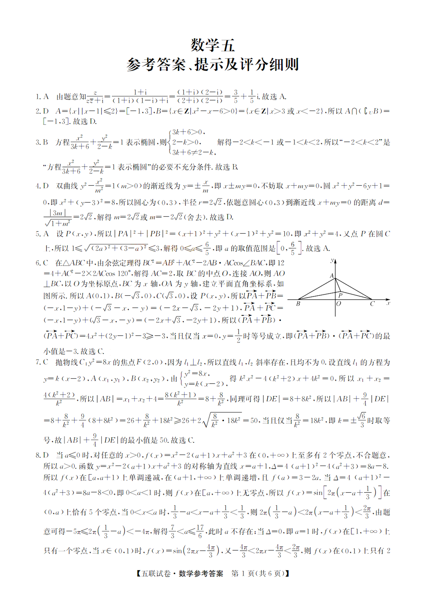 高三数学答案--山西省部分学校2022-2023学年高三上学期第五次联考