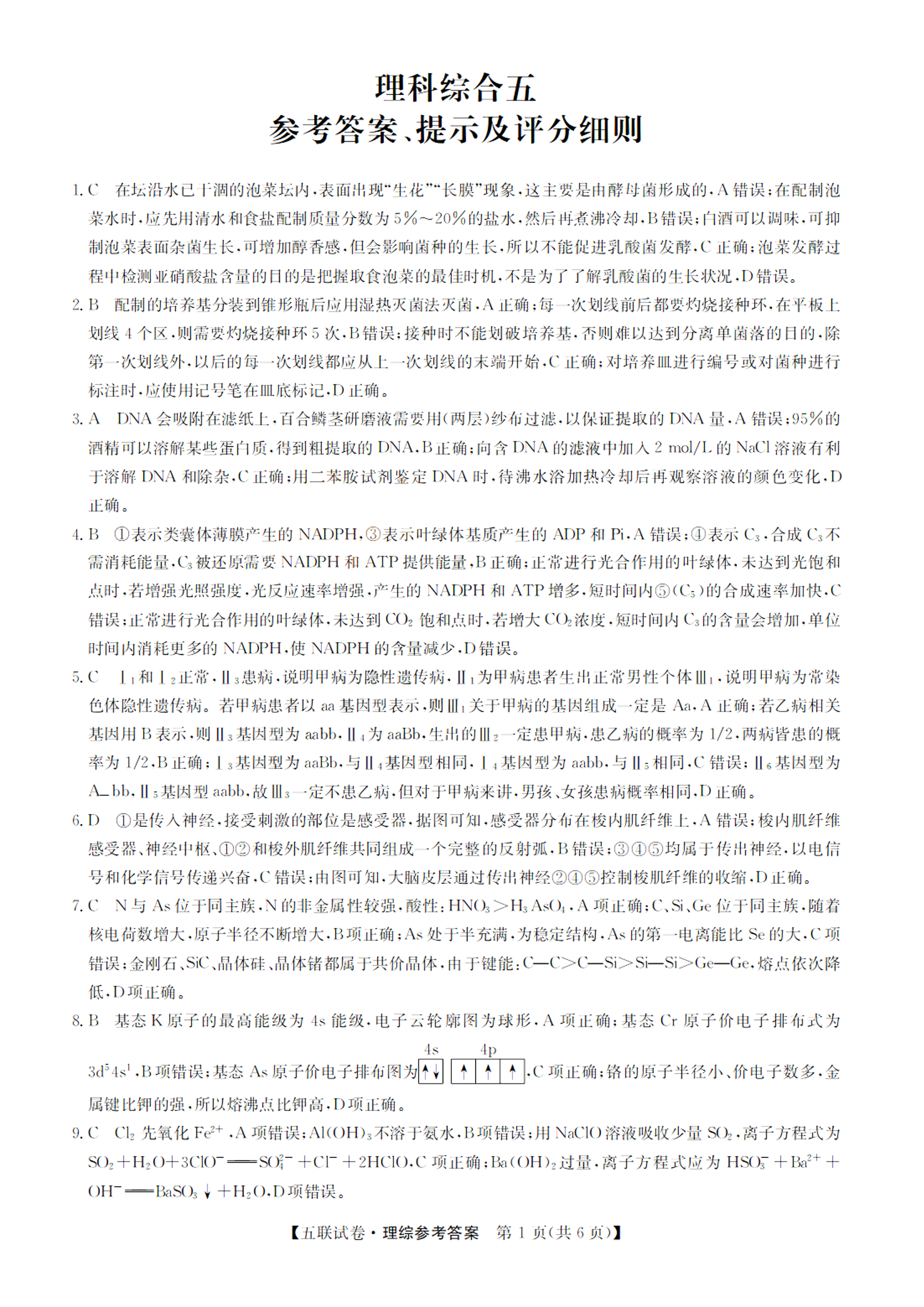 高三理科综合答案--山西省部分学校2022-2023学年高三上学期第五次联考
