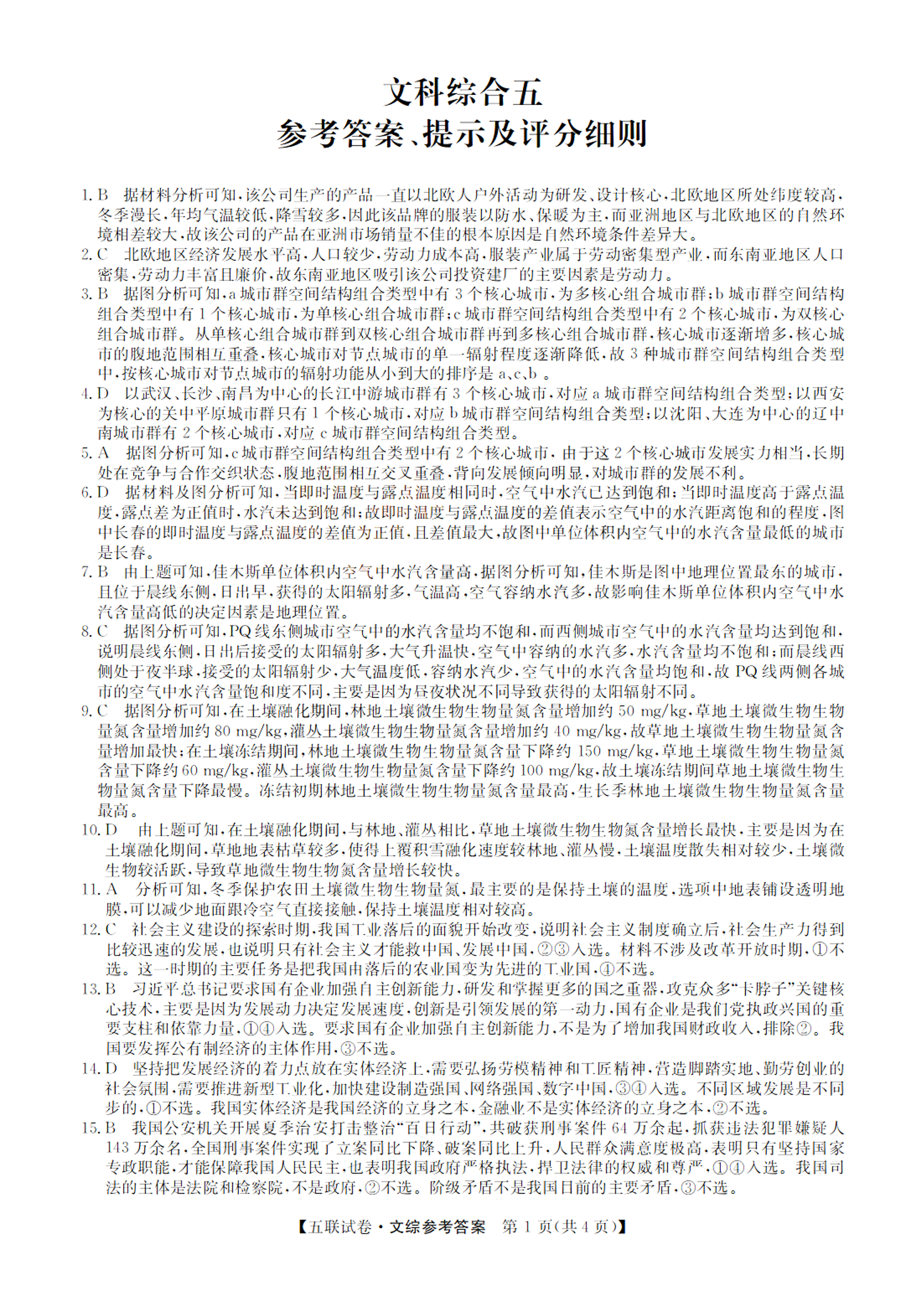高三文科综合答案--山西省部分学校2022-2023学年高三上学期第五次联考