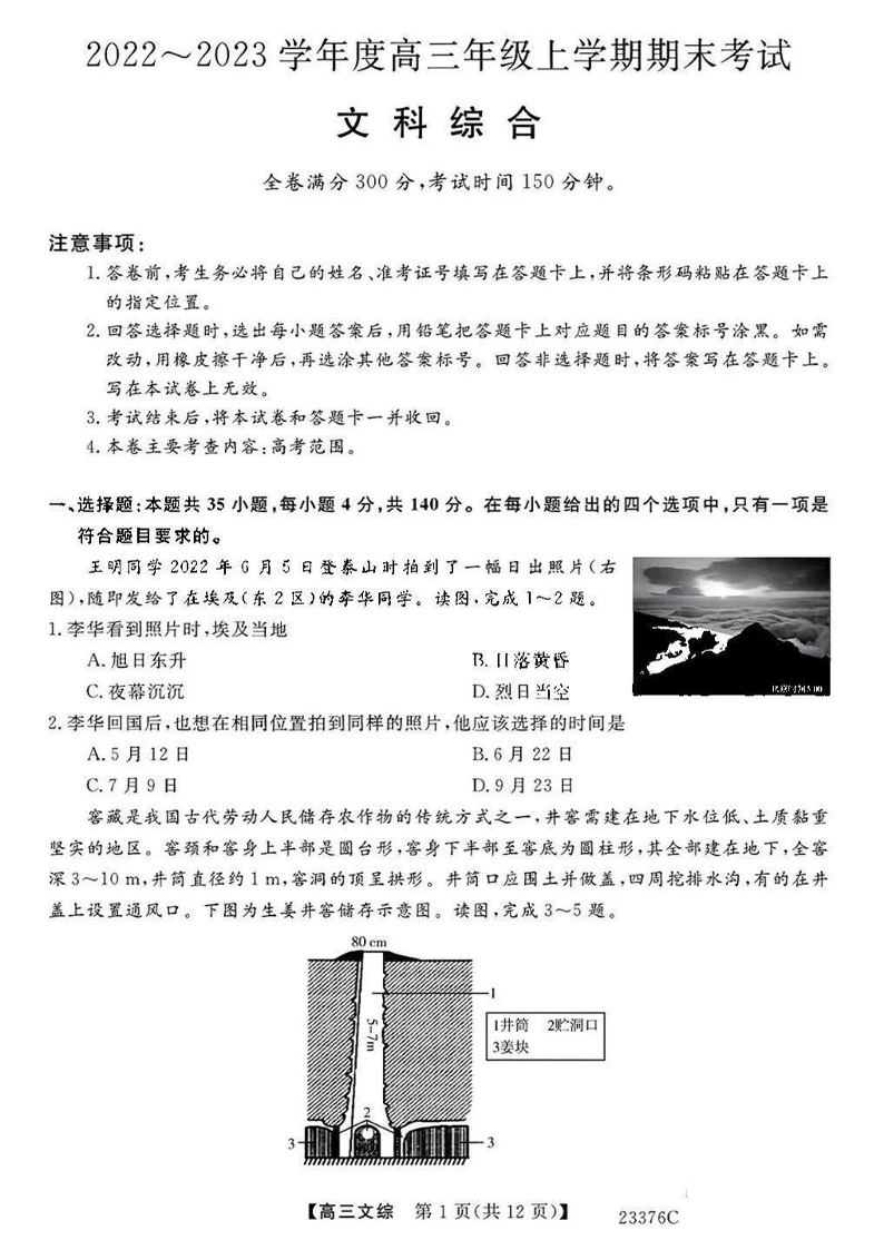 高三文综+答案--金科大联考2022-2023学年度高三年级期末考试