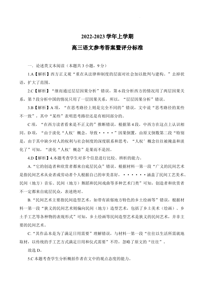 高三语文答案--江西省新余市2022-2023学年度上学期期末质量检测(一模)