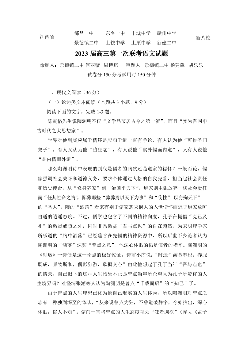 高三语文--江西省新八校2023届高三上学期第一次联考
