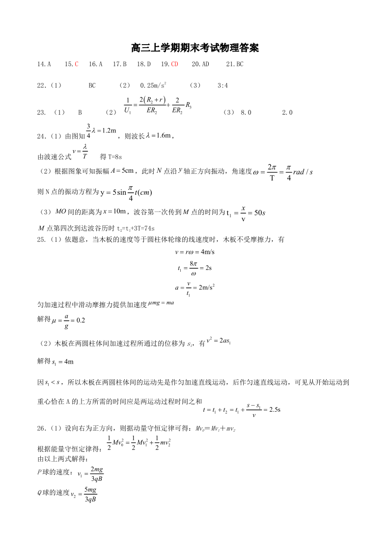 高三物理答案--黑龙江省齐齐哈尔市2023高三上学期期末考试