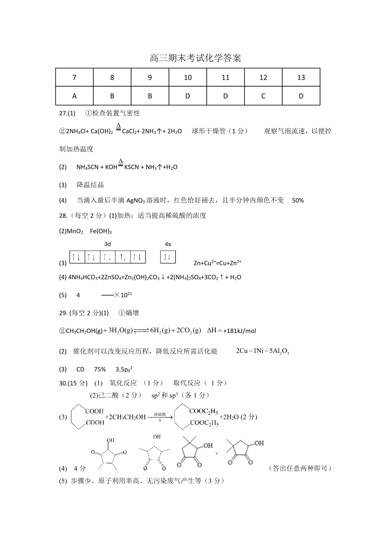高三化学答案--黑龙江省齐齐哈尔市2023高三上学期期末考试