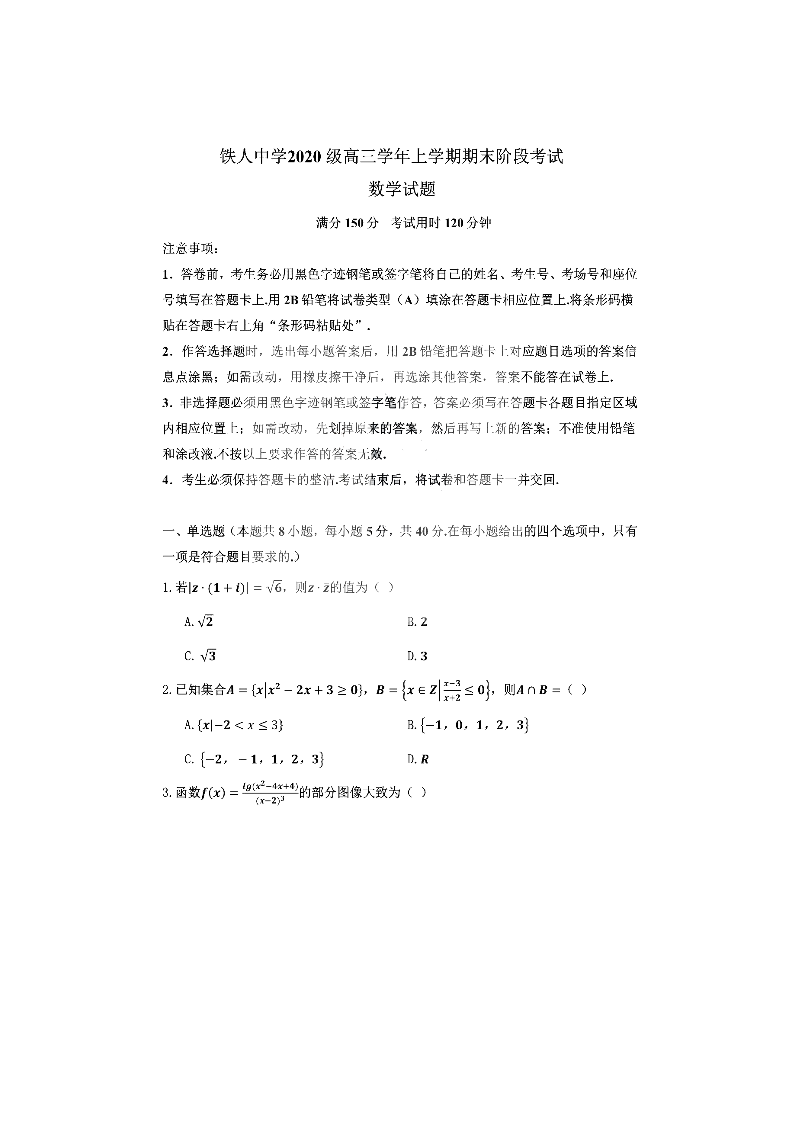 高三数学--黑龙江省大庆铁人中学2022-2023学年高三上学期期末阶段考试