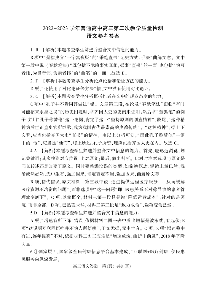 高三语文答案--河南省信阳市2023普通高中高三第二次教学质量检测