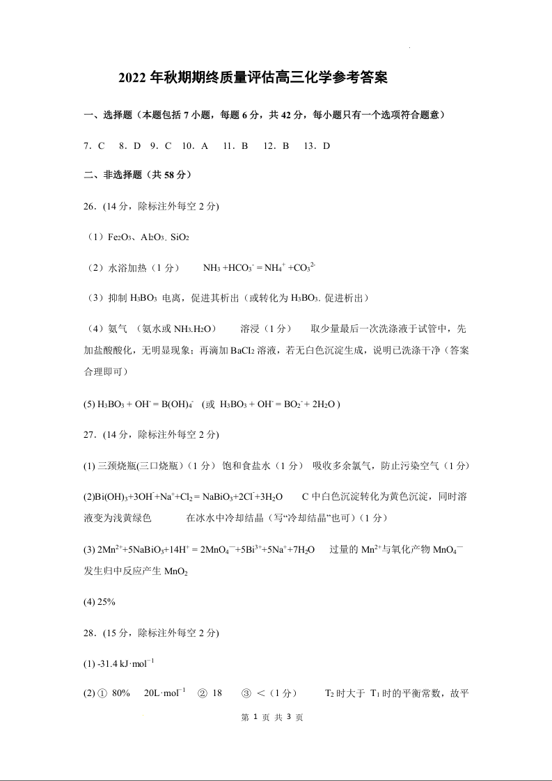 高三化学答案--河南省南阳市2023届高三上学期期终质量评估