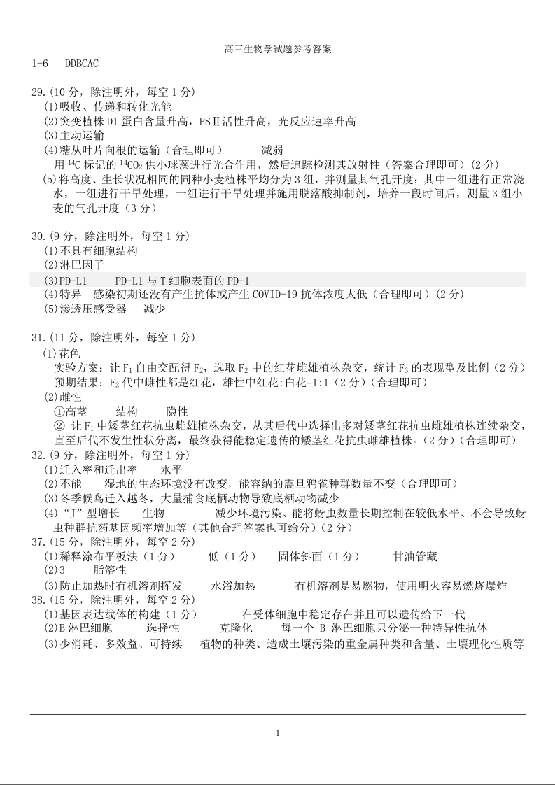 高三生物答案--河南省南阳市2023届高三上学期期终质量评估