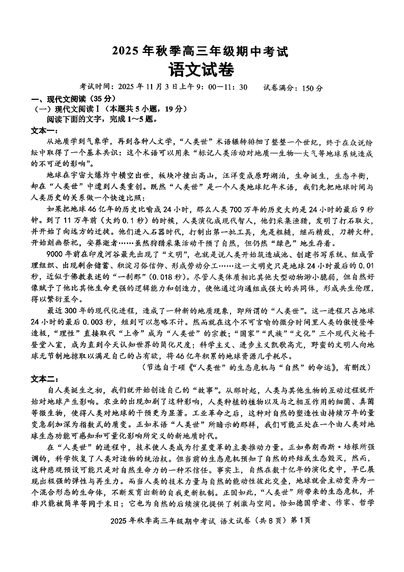 高三语文--湖北省鄂东南教育联盟2026届高三上学期11月联考