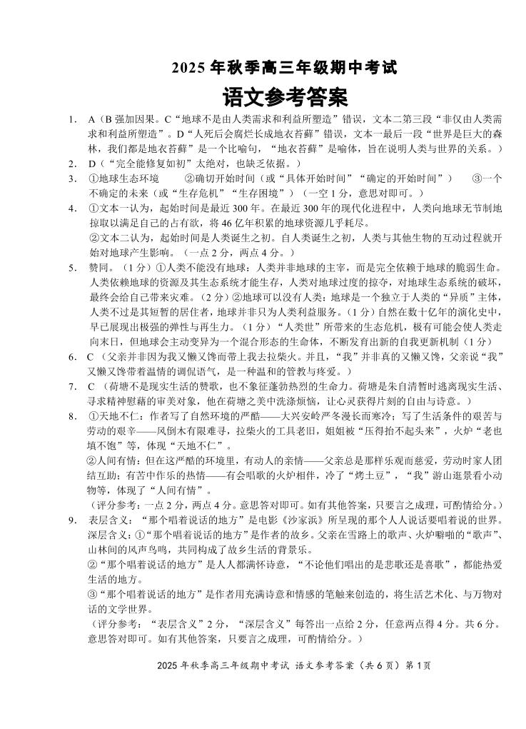 高三语文答案--湖北省鄂东南教育联盟2026届高三上学期11月联考